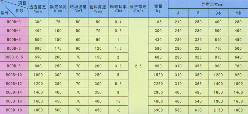 RCDB系列干式電磁除鐵器(亦稱(chēng)PDC系列盤(pán)式、RCDY系列)是一種用于清除粉狀或塊狀非磁性物料中雜鐵的除鐵裝置。其內部采用電工專(zhuān)有樹(shù)脂澆注,自冷式全密結構。具有透磁深度大、吸力強、防塵、防雨、耐腐蝕等特點(diǎn),在及其惡劣的環(huán)境中仍能可靠運行。